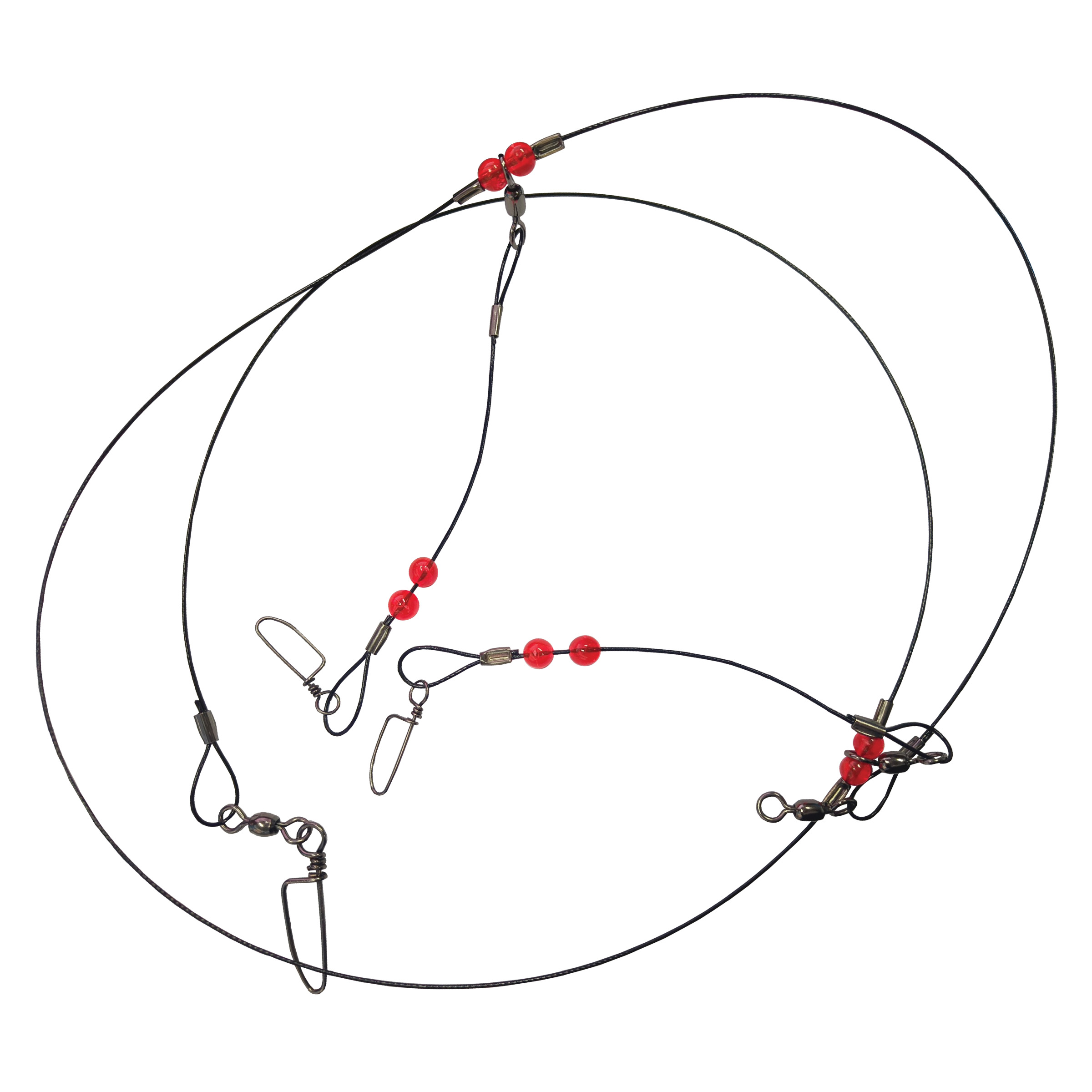 200 lb test#2 barrel swivel#5 coastlock snap48" coated stainless steel wireTwo 6" drop lines